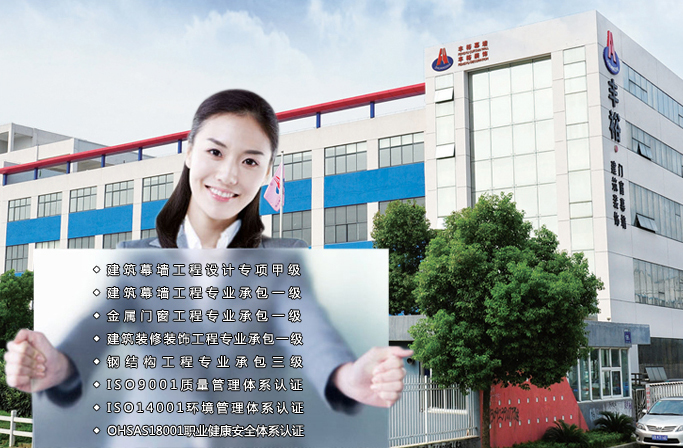 公司現(xiàn)具備建筑幕墻工程設(shè)計(jì)專項(xiàng)甲級(jí)資質(zhì)、建筑幕墻工程專業(yè)承包一級(jí)、建筑裝修裝飾工程專業(yè)承包一級(jí)、鋼結(jié)構(gòu)工程專業(yè)承包三級(jí)、建筑門(mén)窗行業(yè)資格產(chǎn)品制造一級(jí)、建筑門(mén)窗行業(yè)資格產(chǎn)品安裝一級(jí)、江蘇省標(biāo)準(zhǔn)化窗推廣證企業(yè)。